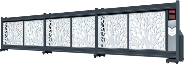 伸縮門主要依靠交叉桿實現(xiàn)伸縮、滑塊導(dǎo)向滑動,整條門體動作點太多,故障率高。